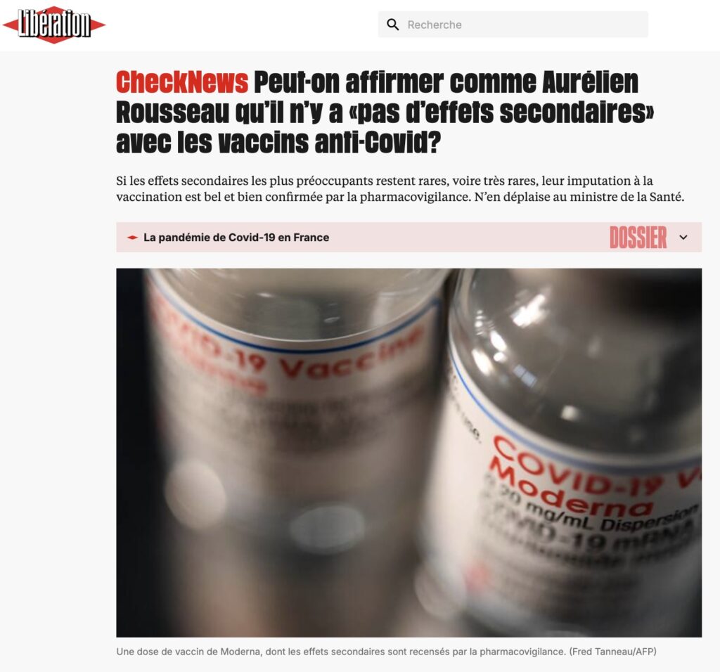 « Si les effets secondaires restent rares, voire très rares »… Checknews de Libération se veut rassurant: il ne s’agit donc que d’un petit mensonge !