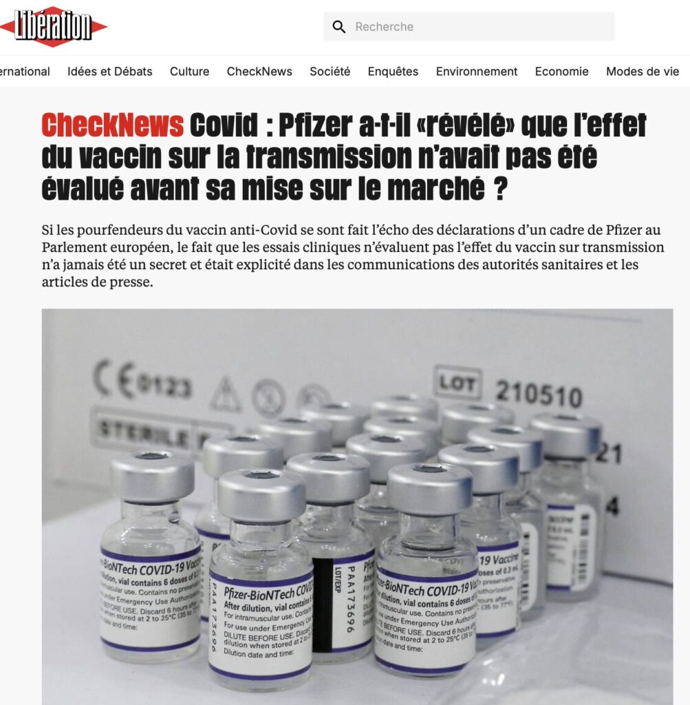 Suite à cette déclaration, Pfizer a dû rappeler qu’aucune étude n’avait été menée pour le dossier d’agrément afin d’évaluer l’effet du vaccin sur la contagiosité. Le caractère infondé de cette déclaration ne fait donc pas débat. Le journal modifiera d’ailleurs ce titre vendeur (pour sa version numérique) dans un second temps : « … on transmets moins le COVID… ».